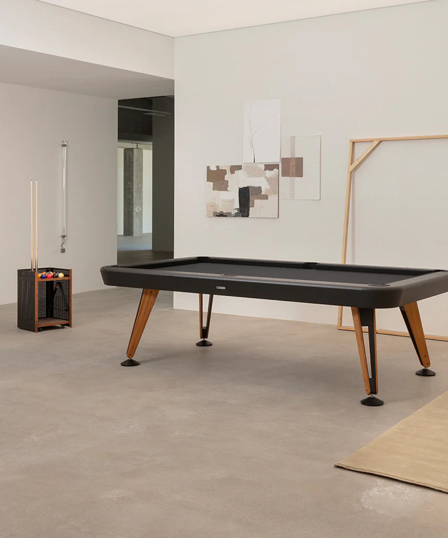 Igual que una diagonal, que cruza un espacio de punta a punta, este billar llena cualquier sala de diseño, elegancia y de actitud playful.