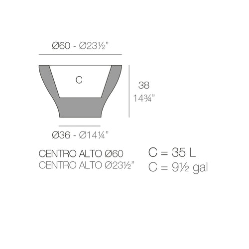 Macetero fabricado con resina de polietileno mediante moldeo rotacional con doble pared. 100% Reciclable. Apto para exterior e interior. Disponible en varios acabados.