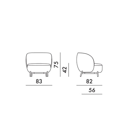 Lunam es una atractiva colección para salón que recuerda las atmósferas de ensueño de un paisaje lunar. Una estructura esencial de metal pintado soporta los volúmenes generosos de los acolchados. Sofá, sillón y puf se proponen en suave tejido rizado o mélangé en los tonos verde oliva, petróleo, tierra de Siena y gris.