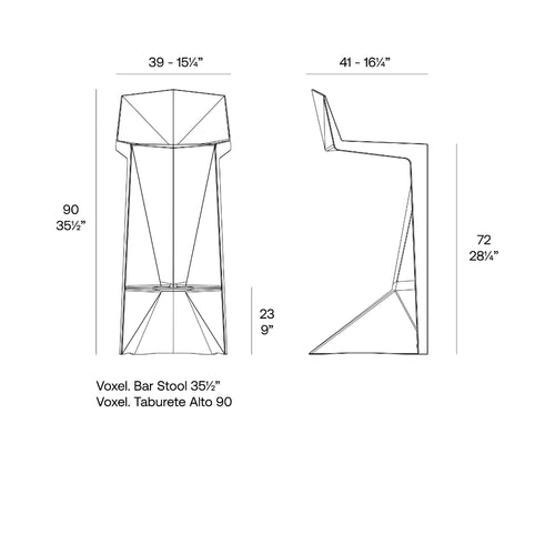 El mobiliario de diseño de la colección Voxel, diseñado por Karim Rashid para Vondom, se caracteriza por sus formas geométricas y facetadas, todas ellas realizadas mediante moldeo por inyección de plástico. Colección formada por una silla, un sillón, una tumbona y el taburete de bar.